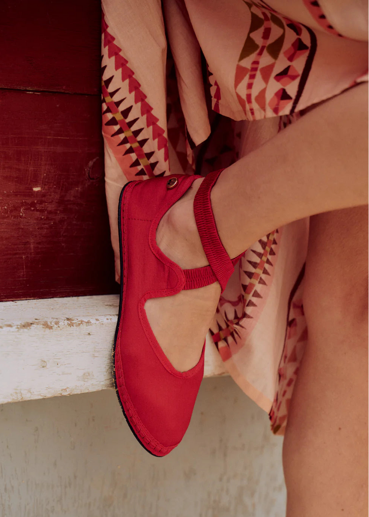 Bailarinas venecianas con cinta elástica cruzada en el tobillo. El zapato tiene en el exterior tejido 100 % raso salvaje y un interior de 100 % piel, junto con una plantilla de gel y una suela exterior de goma EVA, lo que lo convierte en un artículo de alta calidad y en un calzado muy cómodo. Además de contar con los mejores materiales, el zapato está completamente hecho y producido a mano en España.